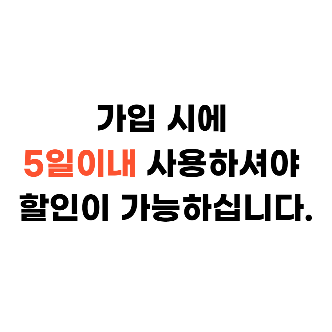 (가입 시에 5일이내 사용하셔야 할인이 가능하십니다.)